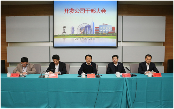 2月23日下午,開發(fā)公司在園區(qū)管委會(huì)一樓會(huì)議室召開干部大會(huì),宣布公司管理層領(lǐng)導(dǎo)任職調(diào)整決定。園區(qū)黨工委委員、管委會(huì)副主任、財(cái)政局局長高揚(yáng)主持會(huì)議并講話。公司副總裁、建發(fā)公司執(zhí)行董事劉建華宣讀干部任職文件,離任、新任干部分別作離別感言和表態(tài)發(fā)言。