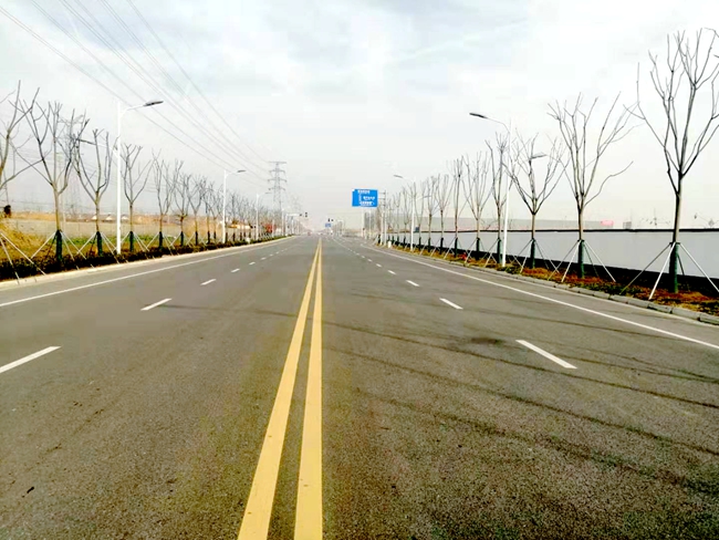 2019年工業(yè)區(qū)市政道路景觀綠化工程主要分為兩個(gè)標(biāo)段實(shí)施,實(shí)施范圍為古城路(莫干山大道—天柱山路)北側(cè)15米綠化帶,天柱山路(古城路—清水河)兩側(cè)人行道綠化帶和莫干山大道(青海湖西路—古城路)兩側(cè)綠化帶及人行道,總綠化面積約35000平方米,工程總投資約868萬(wàn)元,主要種植為櫸樹(shù)、雪松、銀杏、欒樹(shù)、女貞、日本晚櫻、紅梅、垂絲海棠等喬灌木及紅葉石楠、金森女貞、夾竹桃、海桐等常綠灌木和金邊麥冬及草坪等地被類植物。