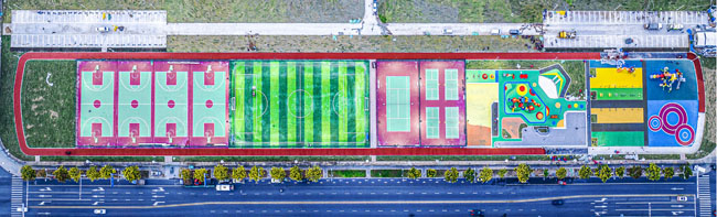 該項(xiàng)目所處位置原為一處待開(kāi)發(fā)地塊,園區(qū)根據(jù)居民需求規(guī)劃建設(shè)健身跑道、全齡段健身區(qū)、綜合兒童活動(dòng)區(qū)、平地輪滑場(chǎng)、廣場(chǎng)舞片區(qū)和各類球場(chǎng)(其中羽毛球四組、網(wǎng)球場(chǎng)一組,7人制籠式足球場(chǎng)一組、籠式籃球場(chǎng)四組),同步建設(shè)公廁、停車場(chǎng)等配套設(shè)施。