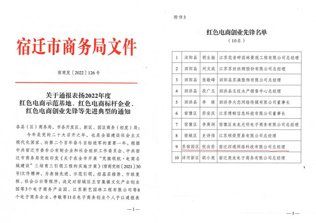 黨的二十大召開之年,市商務(wù)局為擦亮“電商名城”牌子,激發(fā)“電商名城”發(fā)展新動能,12月15日,組織紡織服裝產(chǎn)業(yè)鏈黨建工作暨“黨旗領(lǐng)航·電商名城建設(shè)”推進(jìn)會。園區(qū)企業(yè)家四通科技董事長倪向前獲得“紅色電商創(chuàng)業(yè)先鋒”榮譽稱號。