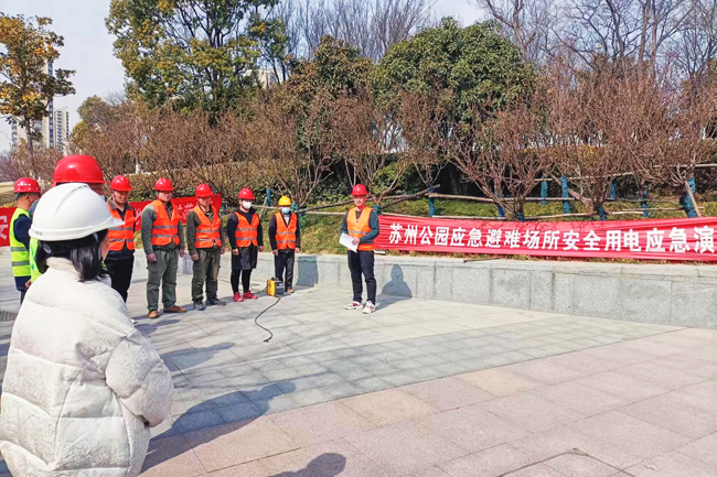 為進(jìn)一步落實(shí)園區(qū)安委會(huì)全體(擴(kuò)大)會(huì)議與公司安全專(zhuān)題會(huì)議精神,強(qiáng)化應(yīng)急預(yù)案保障措施,提高項(xiàng)目部應(yīng)對(duì)安全生產(chǎn)事故和突發(fā)性事件的處理能力, 3月3日城發(fā)公司組織監(jiān)理、施工單位在蘇州公園應(yīng)急避難場(chǎng)所項(xiàng)目現(xiàn)場(chǎng)開(kāi)展安全用電應(yīng)急演練。