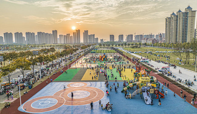 玄武湖西路北側(cè)臨時健身公園占地面積約2.2萬平方米,內(nèi)部設(shè)置720米健身跑道、全齡段健身區(qū)、綜合兒童活動區(qū)、平地輪滑場、廣場舞區(qū)及各類球場(籠式籃球場4組、7人制籠式足球場1組、羽毛球場4組、網(wǎng)球場一組)等6項主題運動功能,滿足周邊群眾“一站式”運動健身需求。場地建成后先后登上人民日報頭版、新華日報、學(xué)習(xí)強國等國家主流媒體,園區(qū)充分利用閑置待開發(fā)地塊空間,積極構(gòu)建“10分鐘健身圈”,獲得周邊居民的認可和喜愛。