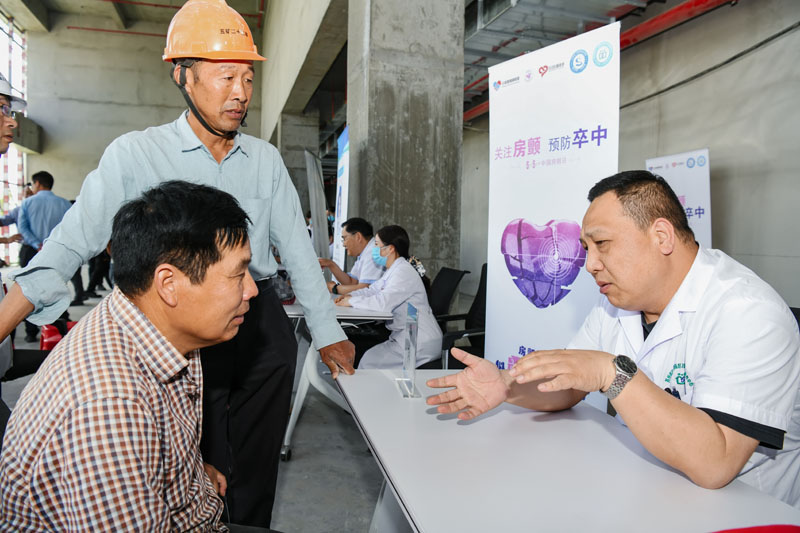 本次活動,由“城芯同筑”黨群服務(wù)站精心策劃,周密安排。宿遷市第一人民醫(yī)院內(nèi)科黨總支書記、大內(nèi)科副主任、風(fēng)濕免疫科主任臧銀耐心解答現(xiàn)場工友的健康疑問,根據(jù)工友的身體情況給予專業(yè)的醫(yī)療建議及指導(dǎo),得到了現(xiàn)場工友的一致好評?;顒蝇F(xiàn)場以建筑工地常見的意外傷害應(yīng)急處理為主題開展健康知識講座,生動形象的講解處理意外傷害相關(guān)知識及應(yīng)急救援措施,同時(shí)現(xiàn)場開展全國“愛眼日”及中國“房顫日”等宣傳教育活動。