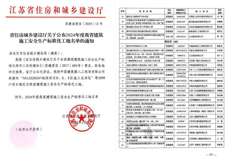 近日,江蘇省住房和城鄉(xiāng)建設(shè)廳發(fā)布了《2024年度江蘇省建筑施工安全生產(chǎn)標(biāo)準(zhǔn)化工地名單》,由園區(qū)城發(fā)公司負責(zé)建設(shè)管理的蘇宿工業(yè)園區(qū)智慧信息產(chǎn)業(yè)園土建及安裝工程位列其中。