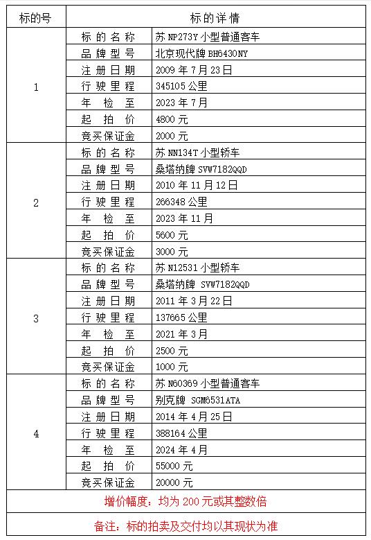 1.本次拍賣標的不含原車牌照。標的拍賣及交付時均以標的實物現(xiàn)狀為準,競買人應在標的物展示時間內(nèi)主動向委托方咨詢標的相關情況,現(xiàn)場踏勘、了解標的現(xiàn)狀,未進行標的勘察的競買人后果自負。