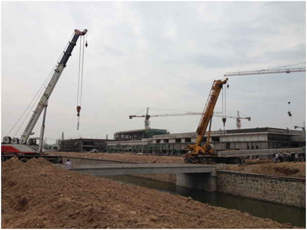 近日,在開發(fā)公司的積極推進(jìn)下,可發(fā)科技廠區(qū)內(nèi)4座橋梁中的2#橋單跨20m空心梁板正式開始吊裝。
