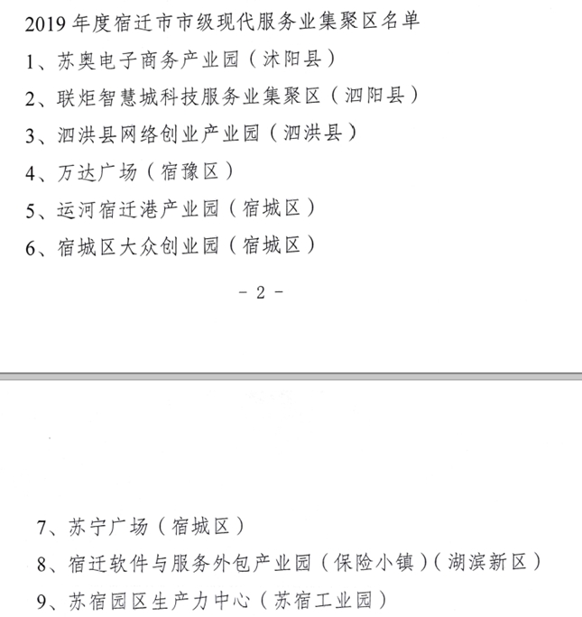 蘇宿園區(qū)生產(chǎn)力中心成功創(chuàng)成宿遷市市級現(xiàn)代服務(wù)業(yè)聚集區(qū)