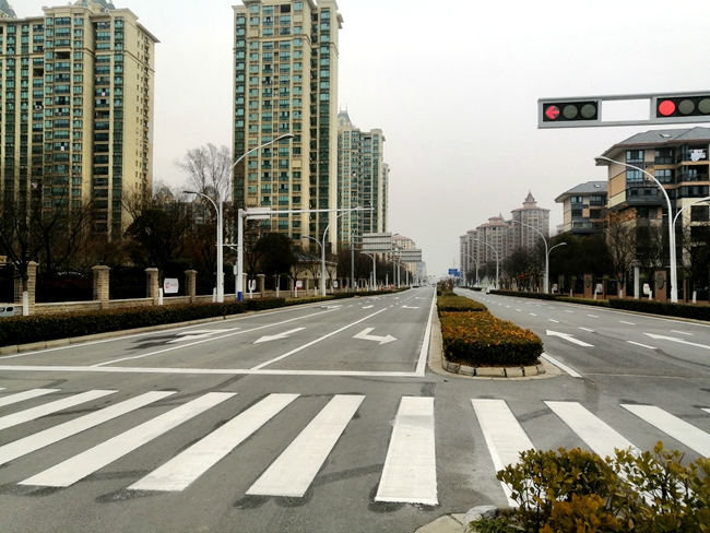 由于區(qū)內道路交通標線時間久和原料自身損耗原因,現(xiàn)有交通標線不明顯、缺損較大。為提高商住區(qū)形象,園區(qū)對商住區(qū)內所有道路交通標線、斑馬線和網格線等標線重新進行施劃,同時對通達大道重點路口進行節(jié)點改造。