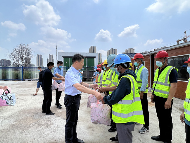為切實維護高溫期間建筑工人身體健康,保障建筑工人在生產(chǎn)過程中的安全與健康,切實做好安全文明施工,確保工程項目順利推進。7月1日上午,總經(jīng)理劉建華帶隊慰問建設工程施工現(xiàn)場工人,給他們送去毛巾、香皂、洗發(fā)水等防暑降溫用品,感謝他們對園區(qū)工程建設作出的貢獻。