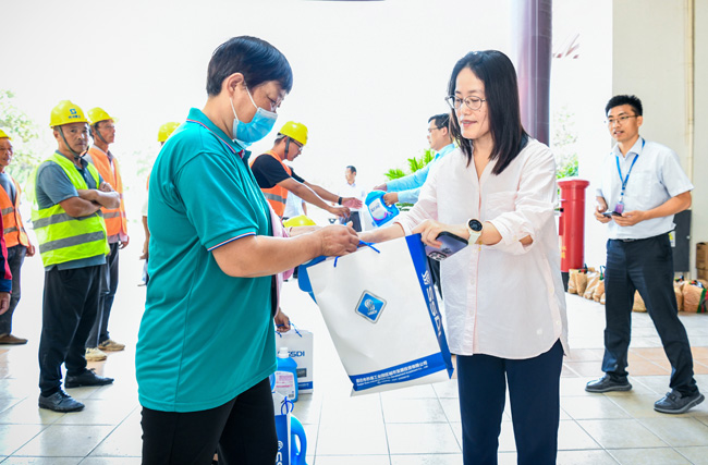 “大家在做好本職工作同時(shí),注意保重身體,防暑措施一定要做到位,確保安全生產(chǎn)。”在明日鄰里中心慰問現(xiàn)場,李蘭霞與物業(yè)員工們親切交談,感謝他們?yōu)楣景l(fā)展和民生保障付出的辛勤努力,反復(fù)叮囑大家要提高夏日防暑意識,做好自我防護(hù),確保以更好的狀態(tài)投入到工作中?,F(xiàn)場強(qiáng)調(diào)各部門要守牢安全底線,做好高溫時(shí)節(jié)各項(xiàng)工作,普及好防暑降溫和急救知識,確保廣大一線職工的安全。