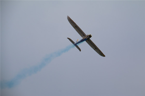 頭頂藍天白云,腳踩綠蔭草地,伴著音樂,聽著講解,宿蘇外的學子以及家長們滿臉的喜悅,他們仰望著一架架航空飛機模型飛上天空,不時發(fā)出“啊……啊……”的驚呼聲。